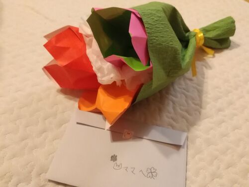 昨日は母の日でした。 数日前から、小2の娘が 何やら計画していたのはわかっていた^^ 「ちょっとパパとすることあるから、 お昼食べたら外に出てってね!」と 午後は家から追い出されて。 息子と遠くまで歩いてきました。 夕方遅くに帰宅してみると、 こん…